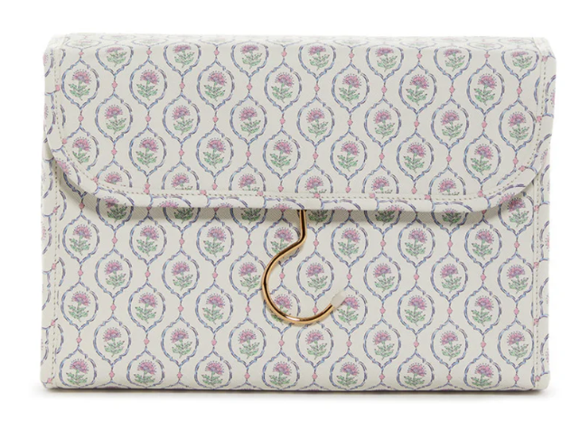 - Gold metal hook for hanging the toiletry kit