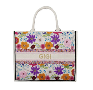 Our handmade beaded bags are the prettiest way to tote your things. Available with cloth or bamboo handles and adorned with a name or initials of your choice between the borders, as shown in product photo. If you would like to customize the bead color for the name or initials, please let us know your preferred color in the additional notes section.