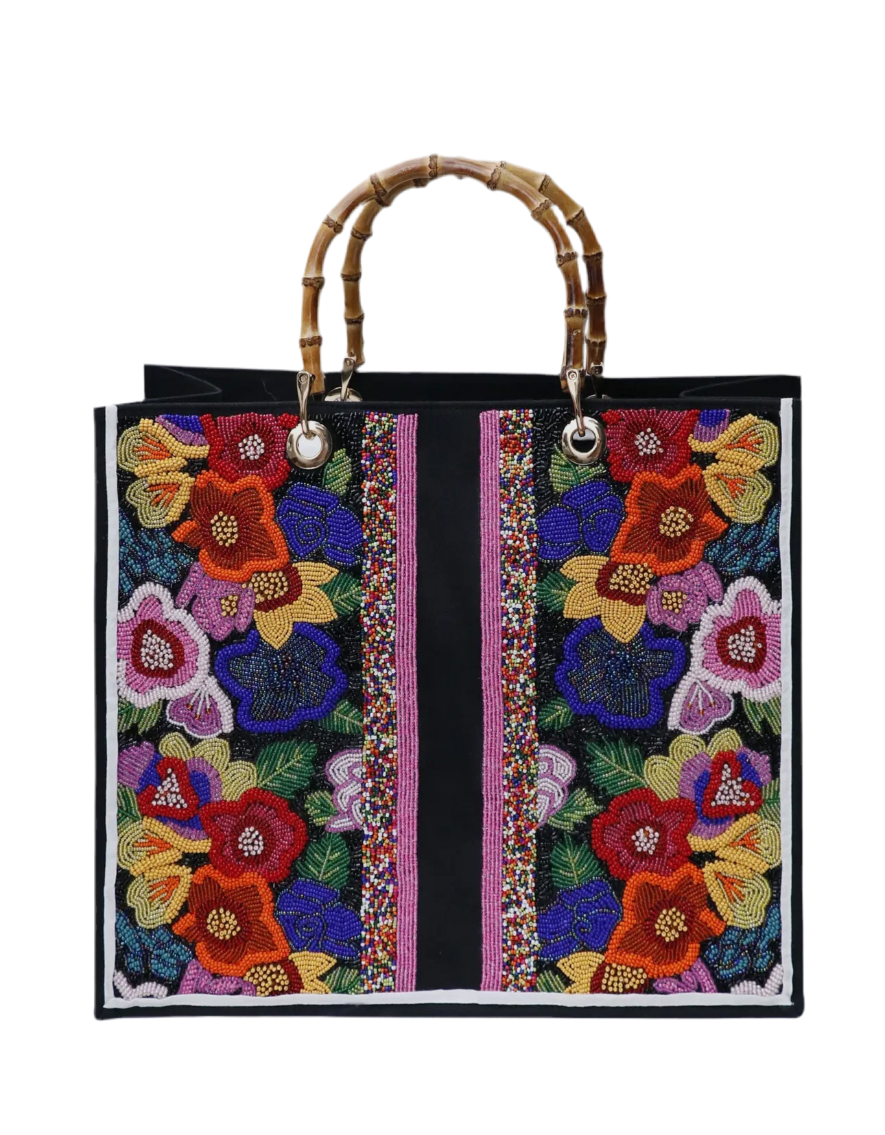 These bags are beaded by hand and made to order. Please note they take 4-6 weeks to arrive.