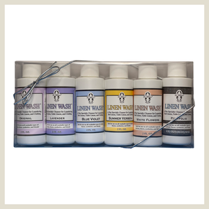 The ultimate way to experience multiple scents of our favorite detergent! This linen wash is designed to launder luxury bed and table linens, and all linen items. Our triple-concentrated formula works extra hard to fight oils, whether they come from food or skin, while protecting fibers to preserve the original beauty of fine textiles and apparel. All of our washes work in cold water, so you never have to worry about heat breaking down the threads.