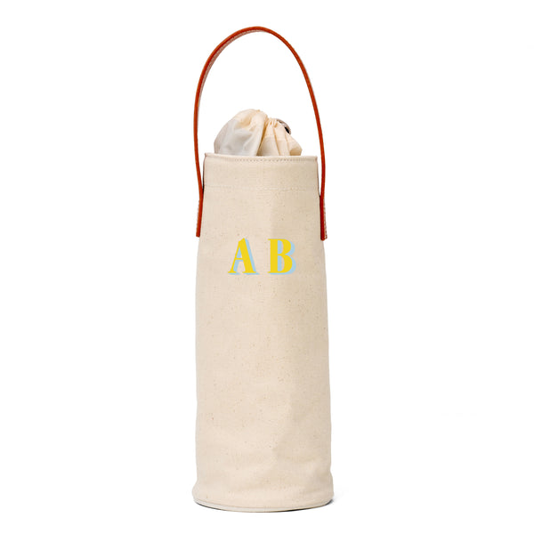 This canvas wine tote is perfect for carrying one bottle of wine securely with its drawstring closure. The vegan leather strap adds a touch of style and convenience. Take your favorite wine with you on the go and enjoy it wherever you are!